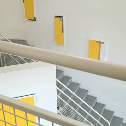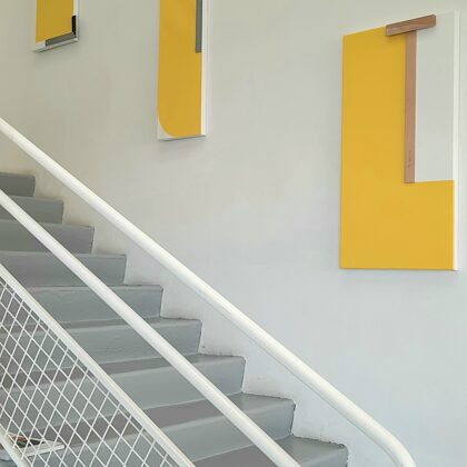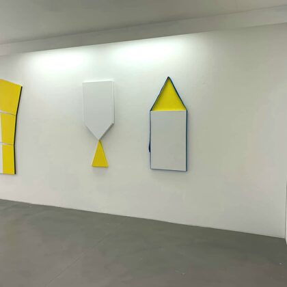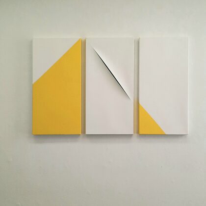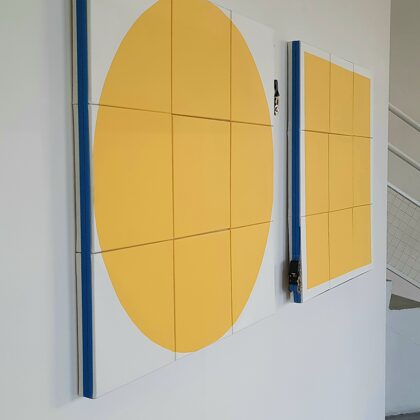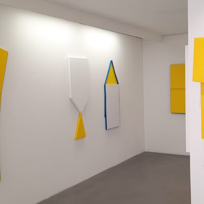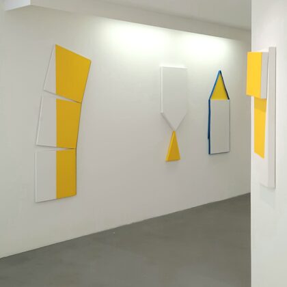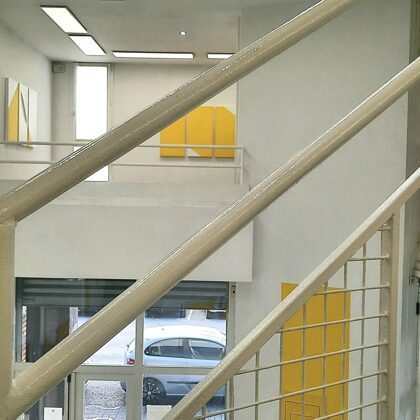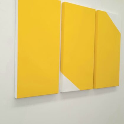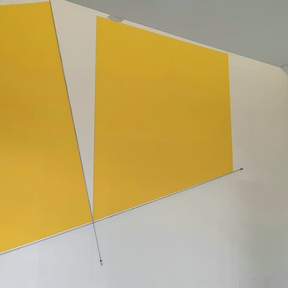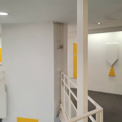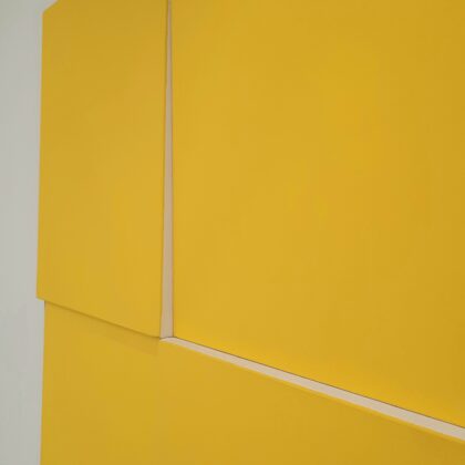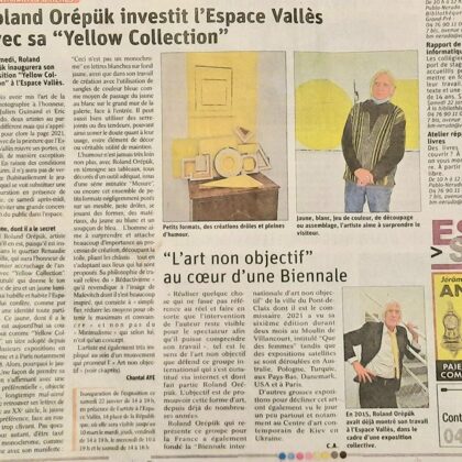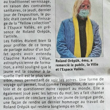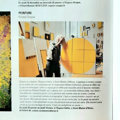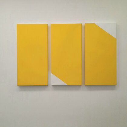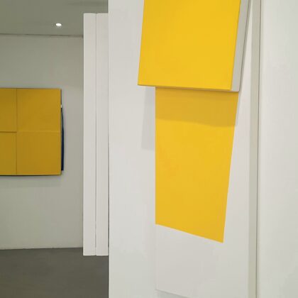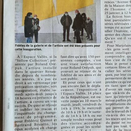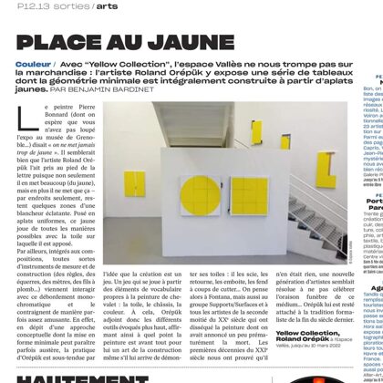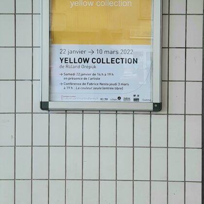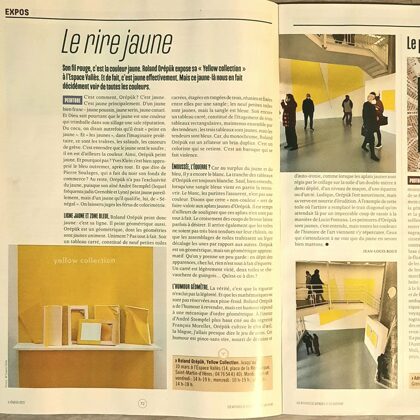 Place au jaune : Avec "yellow collection" l'espace Vallès ne nous trompe pas sur la marchandise : l'artiste Roland Orépük y expose une série de tableaux dont la géométrie minimale est intégralement construite à partir d'aplats jaunes.