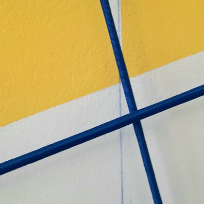 Le peintre Pierre Bonnard disait "on ne met jamais trop jaune" il semblerait bien que l'artiste l'ait pris au pied de la lettre puisque non seulement il en met beaucoup (du jaune) mais en plus il ne met que ça - par endroits seulement, restent quelques zones d'une blancheur éclatante. Posé en aplats uniformes, ce jaune joue de toutes les manières possibles avec la toile sur laquelle il est apposé. Par ailleurs, intégrés aux compositions, toutes sortes d'instruments de mesure et de construction (des règles, des équerres, des mètres, des fils à plomb...) viennent interagir avec ce débordement monochromatique et le contraignent de manière parfois assez amusante. En effet en dépit d'une approche conceptuelle dont la mise en forme minimale peut paraître parfois austère, la pratique d'Orépük est sous-tendue par l'idée que la création est un jeu. Un jeu qui se joue à partir des éléments de vocabulaire propre à la peinture de chevalet : la toile, le châssis, la couleur. À cela, Orépük adjoint donc les différents outils évoqués plus haut, affirmant ainsi à quel point la peinture est avant tout pour lui un art de la construction même s'il lui arrive de démonter ses toiles : il les scie, les retourne, les emboite, les fend à coup de cutter... On pense alors à Fontana, mais aussi au groupe Supports/Surfaces et à tous les artistes de la seconde moitié du XXe siècle qui ont disséqué la peinture dont on avait annoncé un peu prématurément la mort. Les premières décennies du XXIe siècle nous ont prouvé qu'il n'en était rien, une nouvelle génération d'artistes semblait résolue à ne pas célébrer l'oraison funèbre de ce médium... Orépük lui est resté attaché à la tradition formaliste de la fin du siècle dernier.